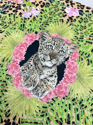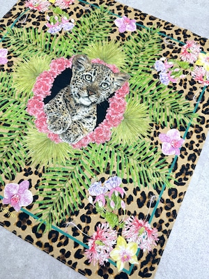 レオパードベージュは、華やかな草花とレオパード柄を組み合わせたインパクト大な一柄。中心には可愛らしい子ヒョウが顔を覗かせています。ベースがヒョウの総柄になっているので、隅々まで柄を楽しむことができます。sampoらしい、こだわりとワクワクが詰まった柄となっています。
