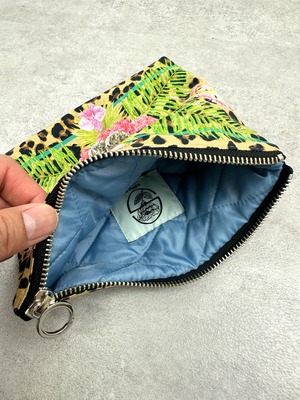 レオパードベージュは、華やかな草花とレオパード柄を組み合わせたインパクト大な一柄。中心には可愛らしい子ヒョウが顔を覗かせています。ベースがヒョウの総柄になっているので、隅々まで柄を楽しむことができます。sampoらしい、こだわりとワクワクが詰まった柄となっています。
