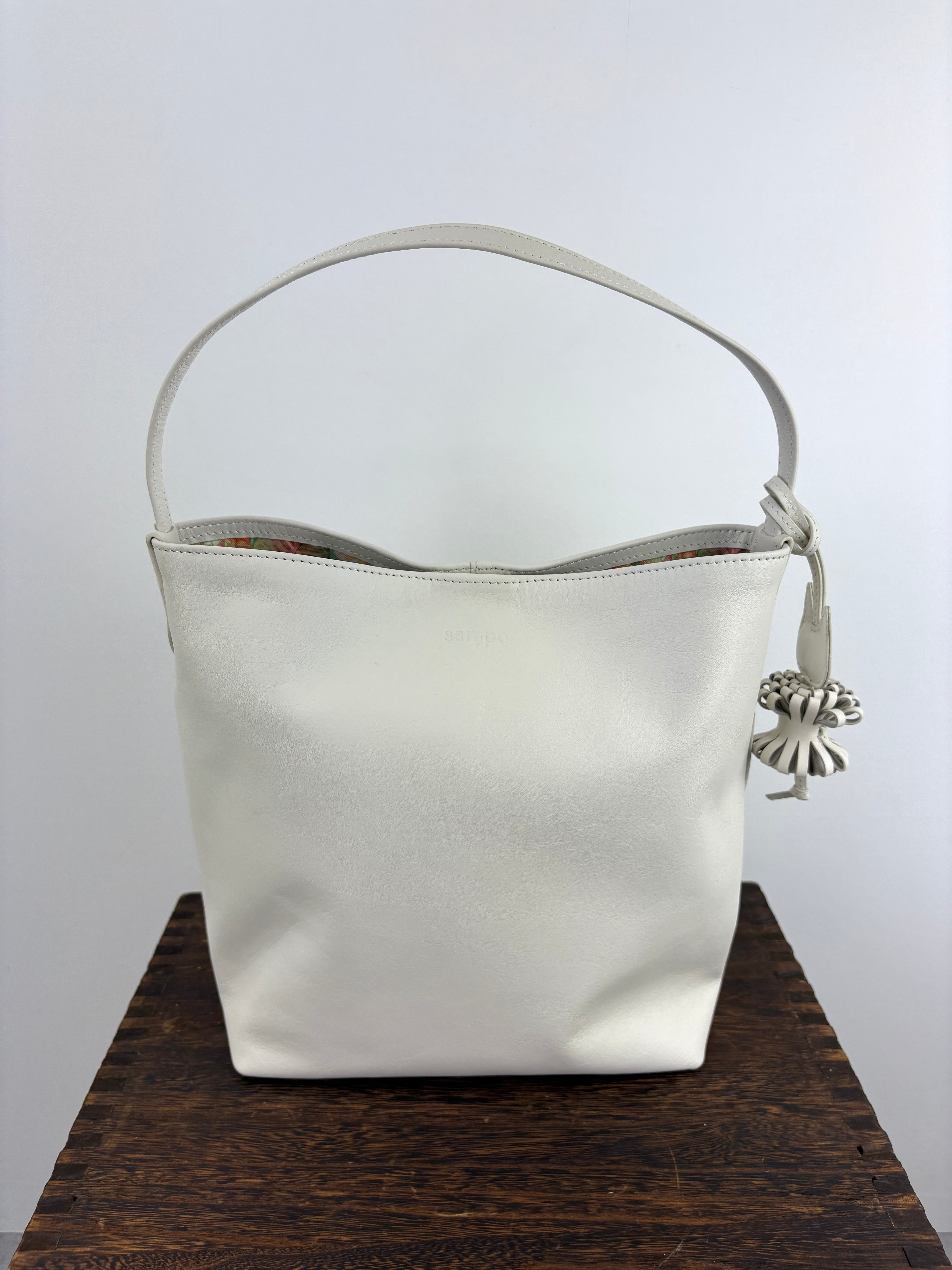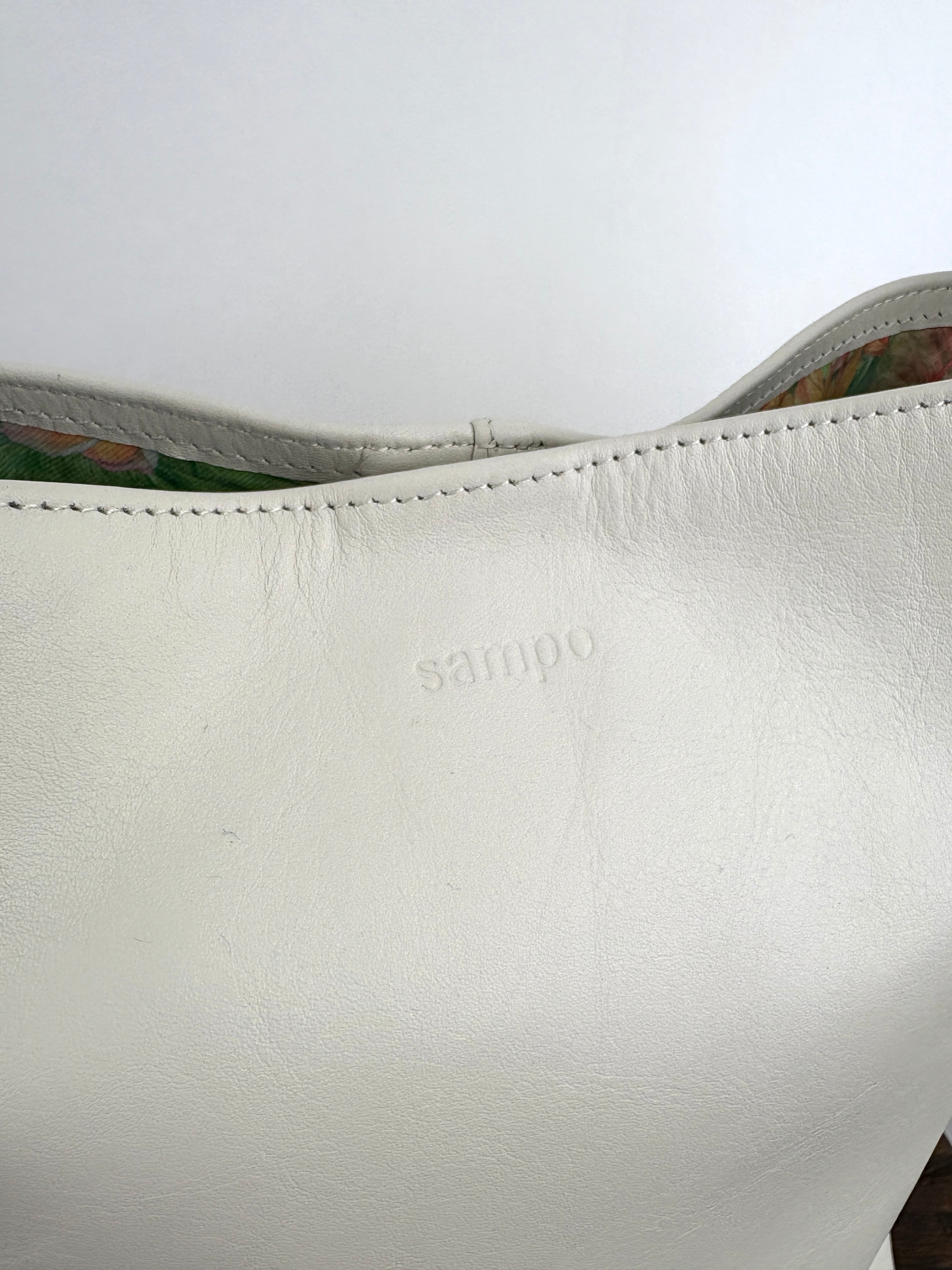 表に本革、裏地にsampoの柄を使用した贅沢な仕様のワンショルダーバッグです。