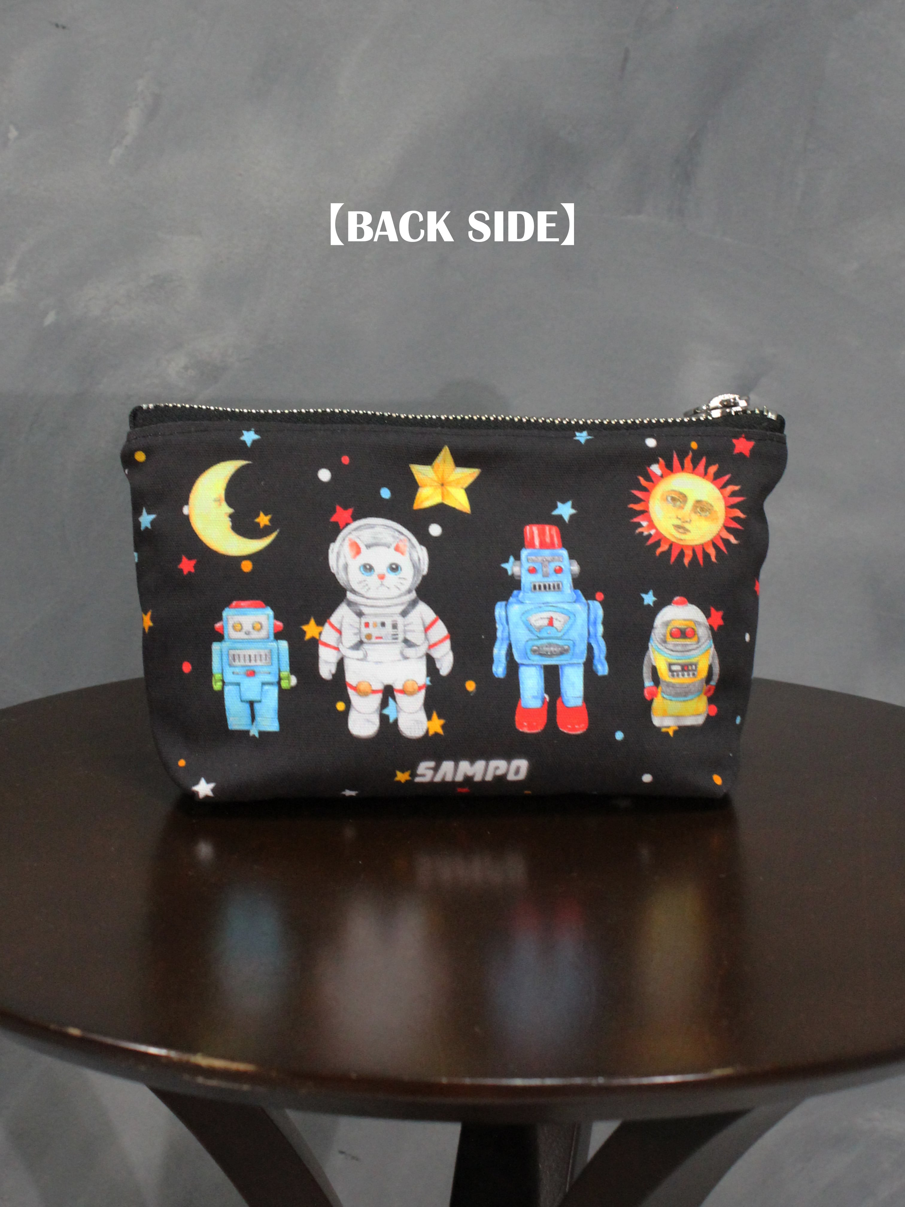 オリジナルのイラストテキスタイルを使用した綿オックスの化粧ポーチです。