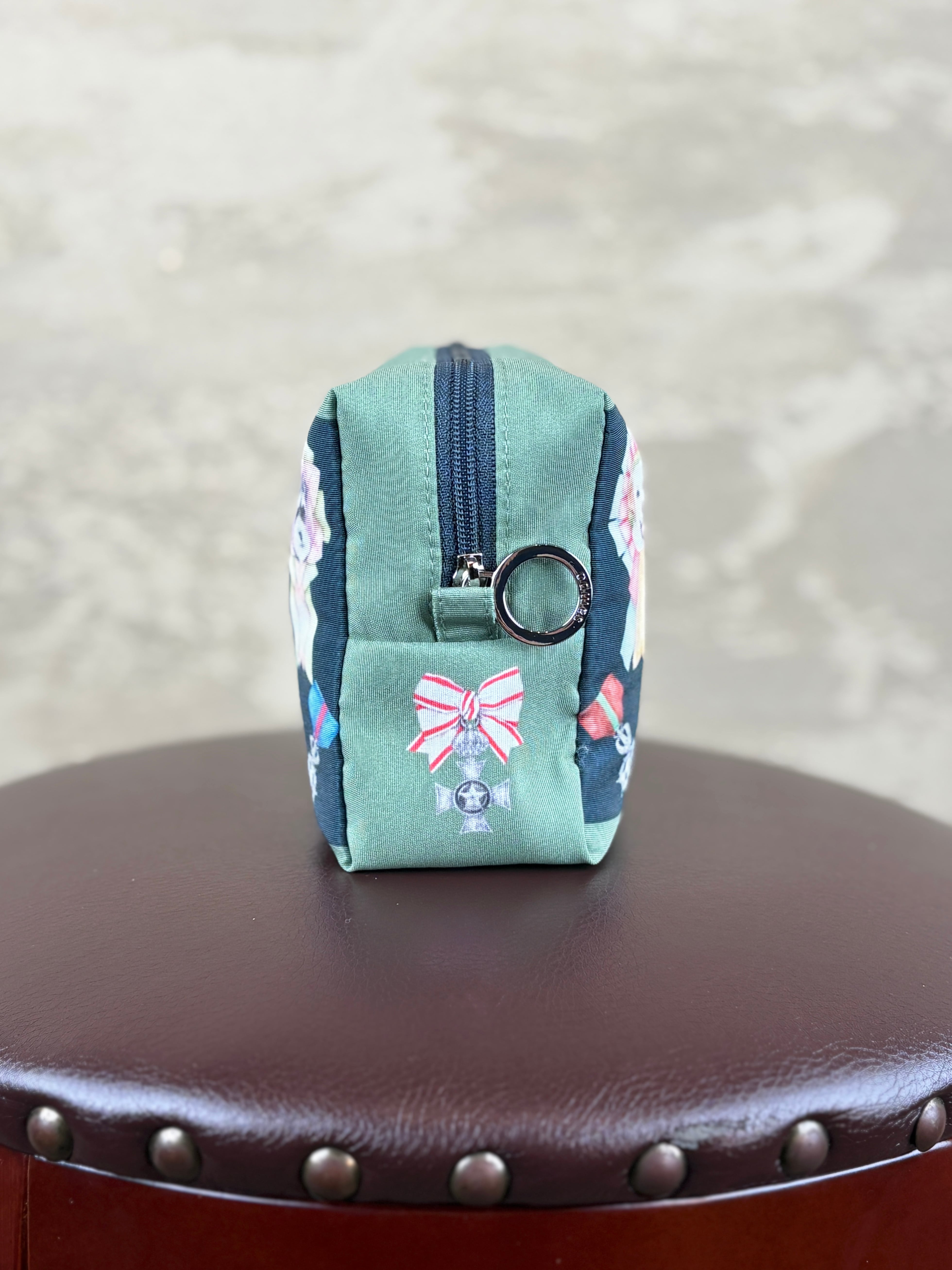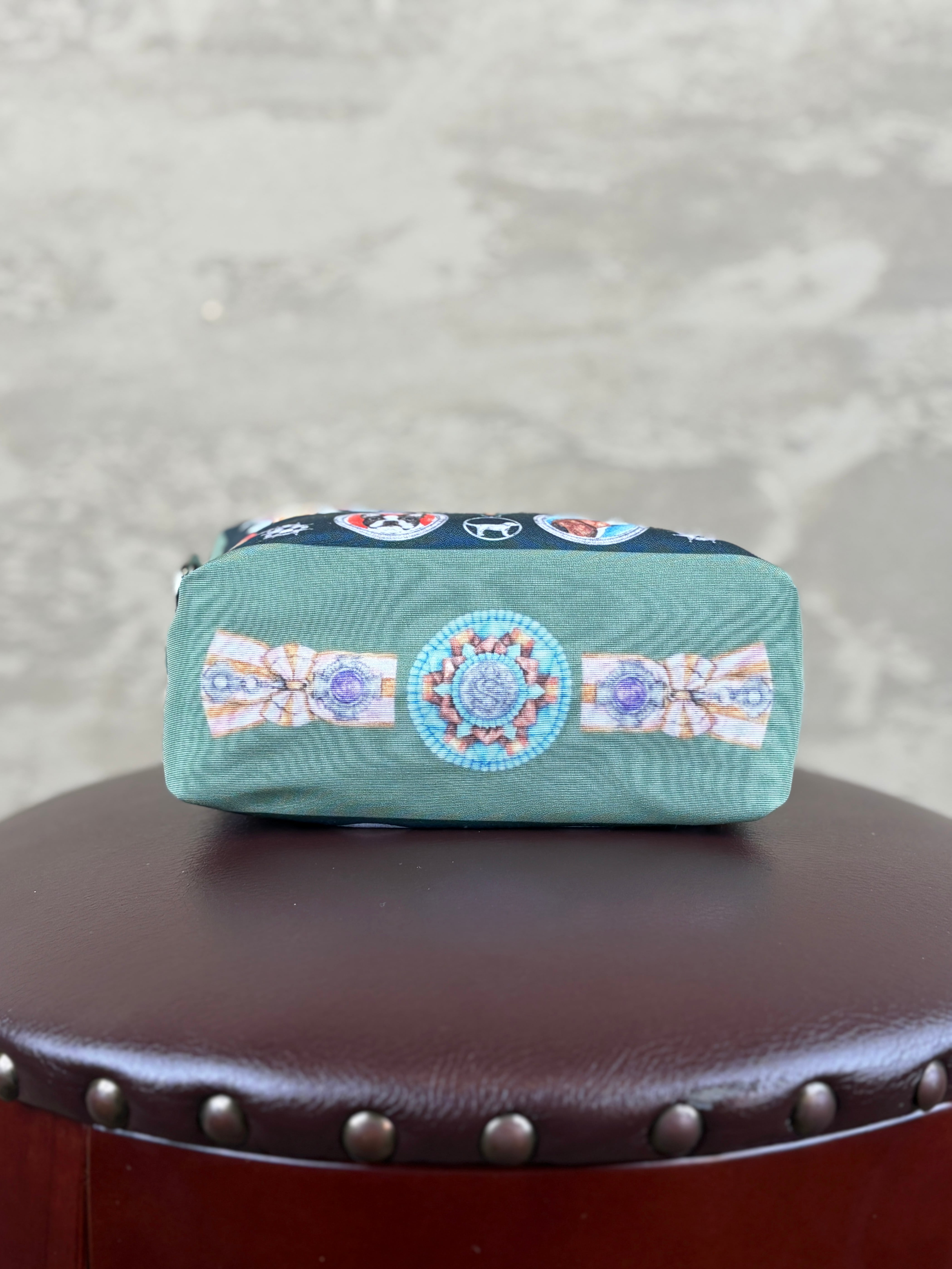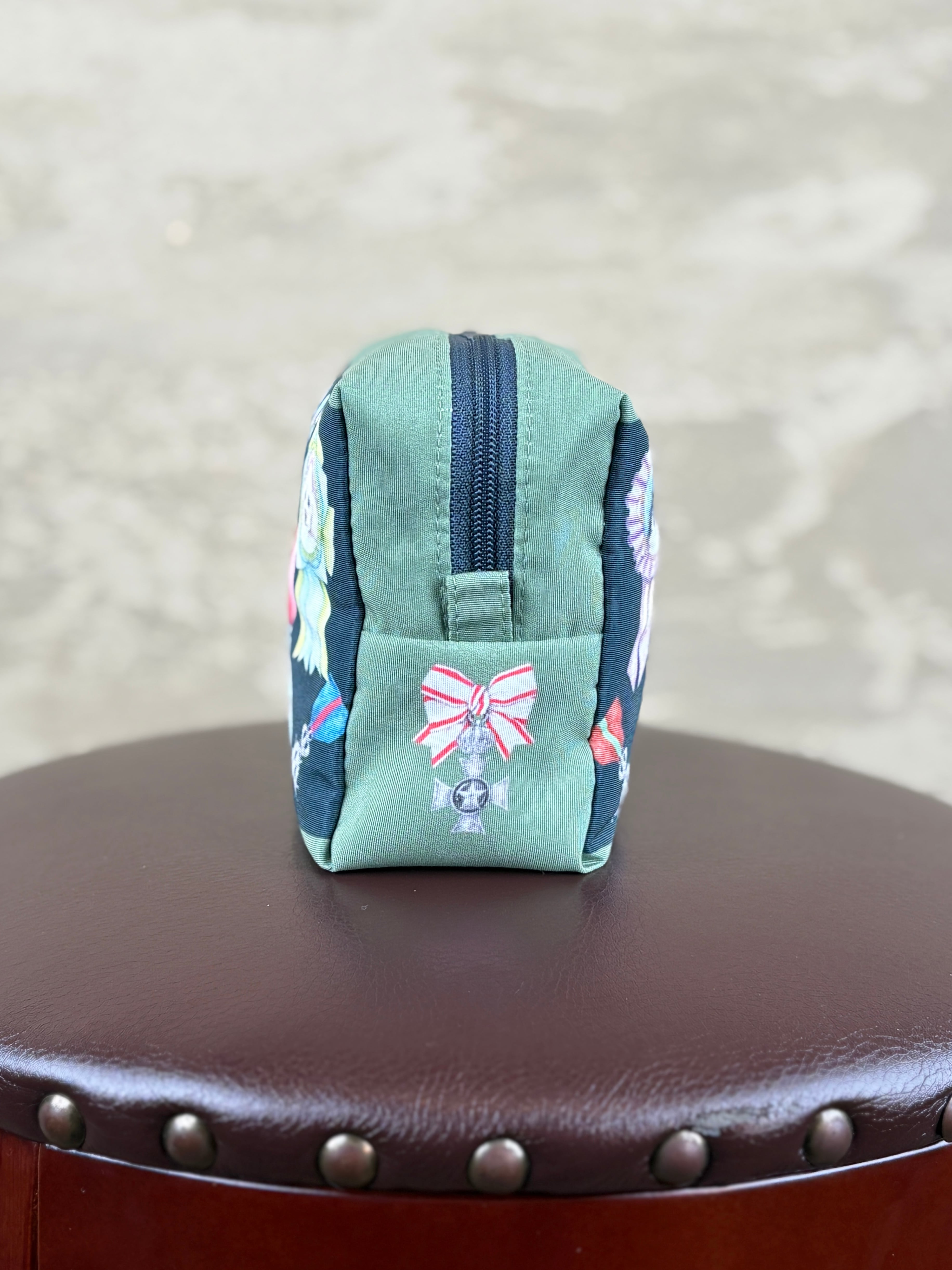 オリジナルのイラストテキスタイルを使用したポリエステルのボックス型化粧ポーチです。
