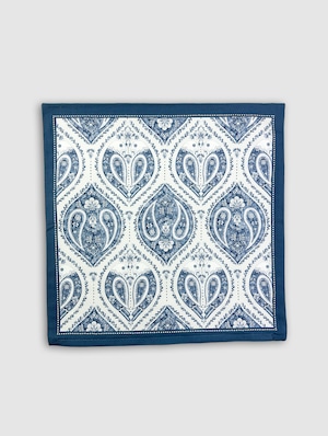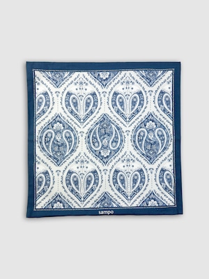 オリジナルのペイズリーを用いた総柄調の一柄です。ペイズリー部分には、今季のテーマにもなっている草花が組み込まれ、よく見るとペイズリーが鳥になっている部分もあり、遊び心満載の柄となっています。レッドカラーと同じイラストが使用されつつ、色と配置を変えるだけで全く別の印象を与えます。今季の中で最も落ち着いたカラーリングになっていますので、他の柄が派手すぎて抵抗がある方におすすめの柄となっています。