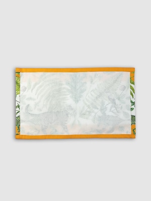 45cm×27cmの横長サイズで、デザイナーが手書きで描いたイラストを用いたテキスタイルが型に合わせて配置されています。
