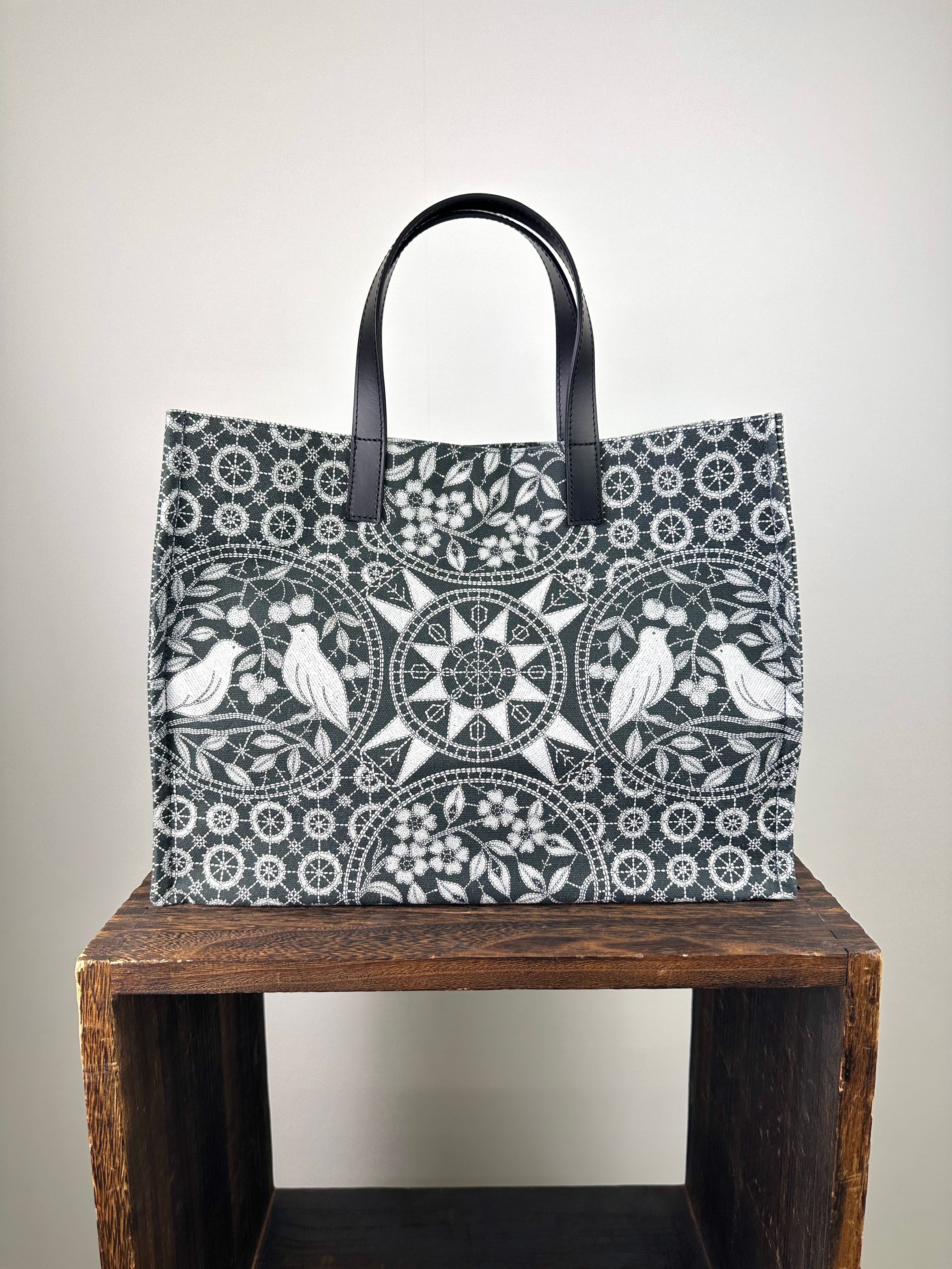 オリジナルのイラストテキスタイルを使用したボックス型の綿キャンバストートバッグです。