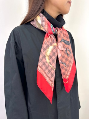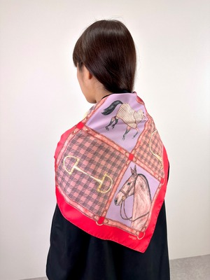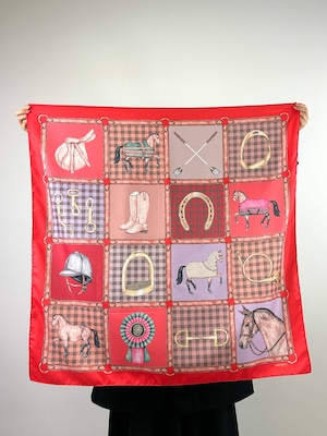 舞台となっている邸宅に暮らす人が、乗馬を嗜むイメージからつくられた柄です。乗馬のアイテム一つ一つを丁寧に描き、それをブロック状に配置することでアイテムをより際立たせています。ギンガムチェックも手描きで描いており、柄にポップさを加えています。人気のホース柄は持ちやすく、コーディネートのアクセントにもなります。